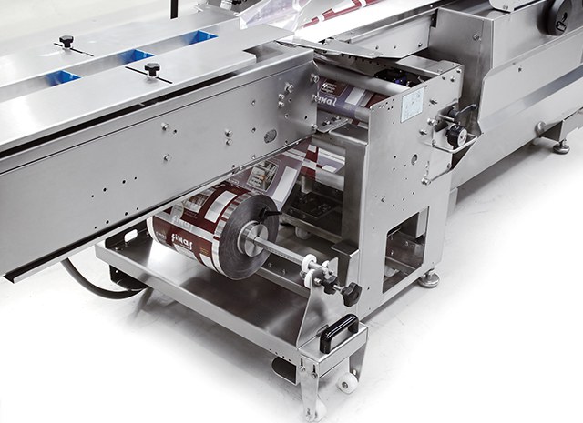 Máquina embaladora Flow Pack horizontal (HFFS) de três soldas que realiza uma embalagem tipo almofada. Orientada para aplicações de alto rendimento dirigidas a setores de panificadoras, biscoitos, chocolates e doce-confeitaria.