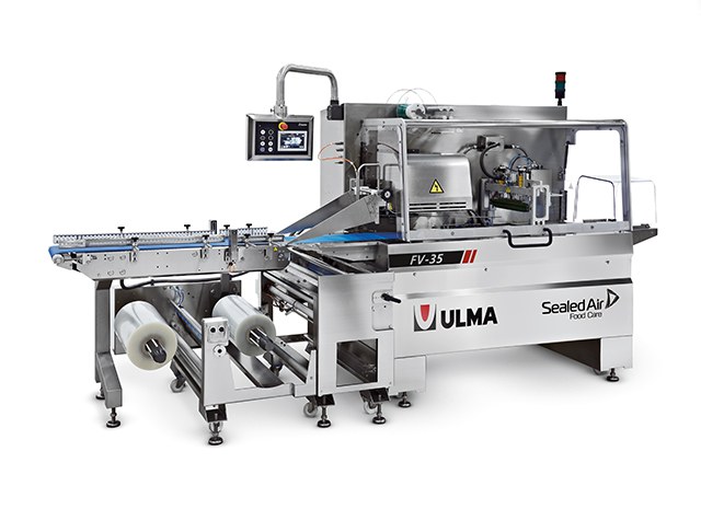 A ULMA PV 35 é uma máquina de bobina inferior, que utiliza filme de barreira termoencolhível CRYOVAC® e a coloca debaixo do produto a ser embalado. O filme de barreira CRYOVAC® é desenrolada à medida que o produto avança no sistema de selagem longitudinal, o que evita a contaminação da zona de selagem transversal, pois não há contato com o produto na zona de selagem.