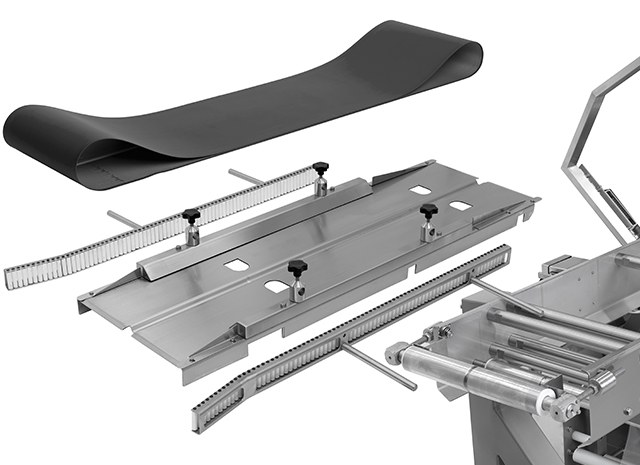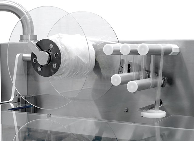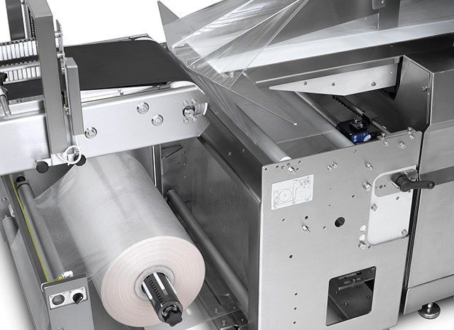 O sistema FLOW-VAC® detecta o início de cada produto e o introduz automaticamente no filme. A selagem transversal é uma selagem completamente hermética de qualidade muito alta.