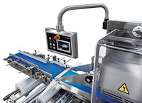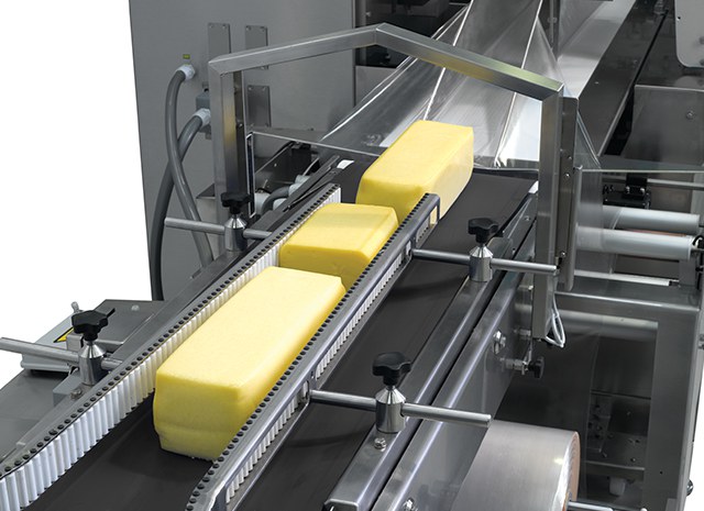 Máquina embaladora Flowpack horizontal (HFFS) tipo FLOW-VAC® que partindo de uma única bobina de filme barreira e retrátil, cria uma embalagem a vácuo. Para carnes defumadas e processadas, assim como queijo. É também uma máquina ideal para carne fresca de porco e cordeiro.