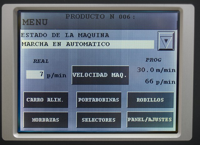 O sistema de controle por um PC industrial incorpora um sistema de comunicação ágil e simples através de uma tela touch screen que informa constantemente a situação da máquina e dos parâmetros de controle.