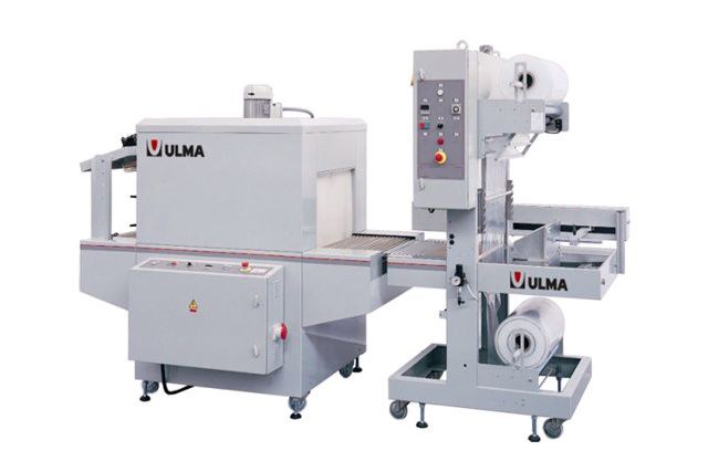 Enfaixadora semi-automática marca ULMA, modelo SVS, de design modular para envolver com filme retrátil em lâmina uma grande gama de produtos individuais e agrupações.