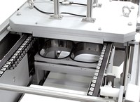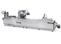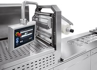 Máquina termoformadora higienizável para filme flexível ou rígido com possibilidade de embalagem em atmosfera modificada (MAP) e a vácuo. Máquina de nível de produções médio-alto.