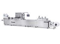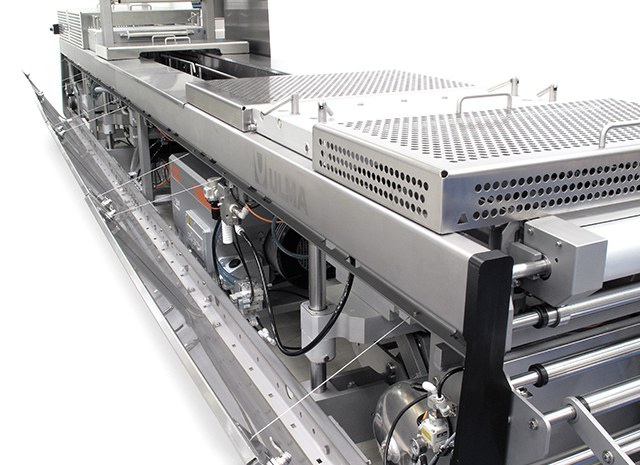 Máquina termoformadora higienizável para filme flexível ou rígido com possibilidade de embalagem em atmosfera modificada (MAP) e a vácuo. É a termoformadora higienizável de maior nível de produções.