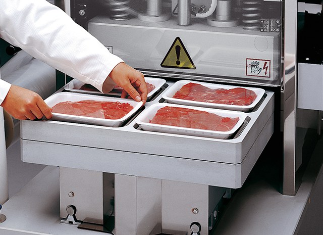 Máquina termoseladora semi-automática pré-industrial para todo tipo de bandejas pré-formadas. Possibilidade de embalagem em atmosfera modificada (MAP) e a vácuo. Sistema de transporte manual de bandejas com nível de produções básico.