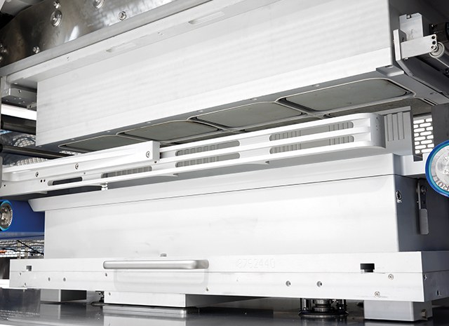 Este equipamento está projetado para sua integração em linhas de produções médias-altas ou em processos que requeiram de um controle preciso do movimento no transporte das bandejas. O processo de selagem principalmente é realizado em duas filas (dupla-linha) mas poderá ser realizada em fila única (mono-linha) dependendo do formato a ser embalado.