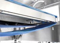 Máquina termoseladora automática para todo tipo de bandejas pré-formadas de formas regulares. Possibilidade de embalagem com atmosfera modificada (MAP) e à vácuo. Sistema de transporte de braços. Para integração em linhas automáticas e altas produções.