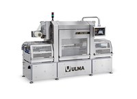 Máquina termoseladora automática para todo tipo de bandejas pré-formadas de formas regulares. Possibilidade de embalagem com atmosfera modificada (MAP) e à vácuo. Sistema de transporte de braços. Para integração em linhas automáticas de médias-altas produções.