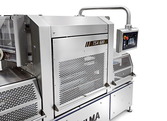 Termoseladora automática para todo tipo de bandejas pré-fabricadas de diferente composição. Como material de tampa é utilizado filmes termoseláveis que podem ser impressos.