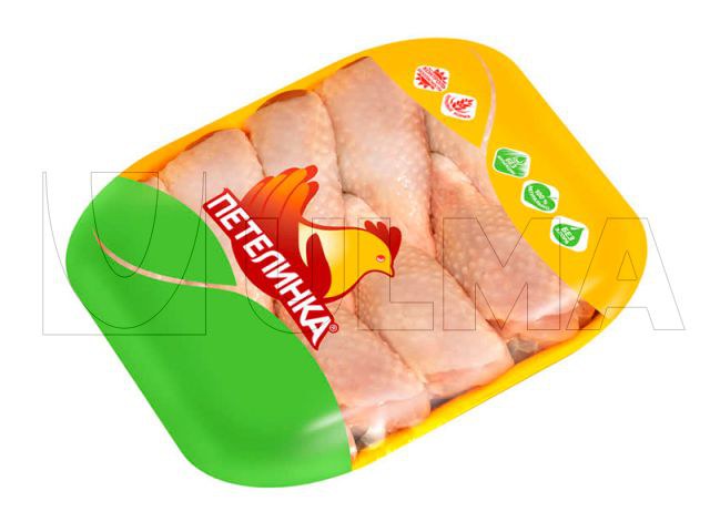 Coxas de frango embaladas em filme extensível (SSD®) 1886_1.jpg GALAXY Máquina automática para a embalagem com filme extensível de produtos frescos em bandejas pré-formadas. Grande nível de produções, especialmente desenvolvida para centrais de embalagem.