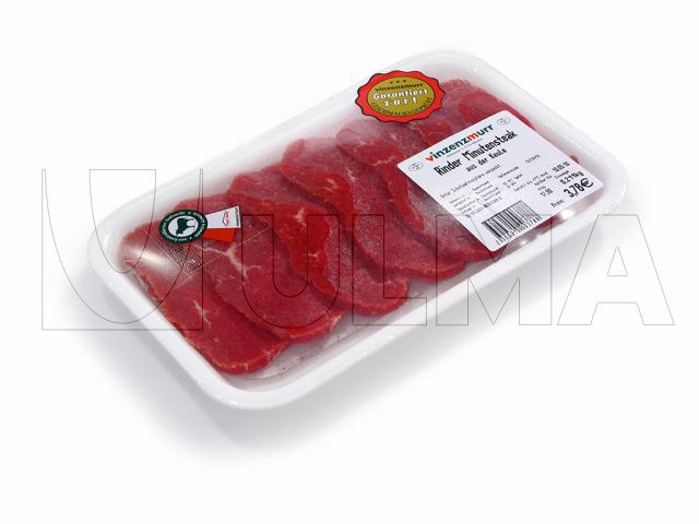 Filés de carne embalados em bandeja termoselada com atmosfera modificada (MAP) 1652_1.jpg TSA 875 Máquina termoseladora automática para todo tipo de bandejas pré-formadas de formas regulares. Possibilidade de embalagem com atmosfera modificada (MAP) e à vácuo. Sistema de transporte de braços. Para integração em linhas automáticas de médias-altas produções.