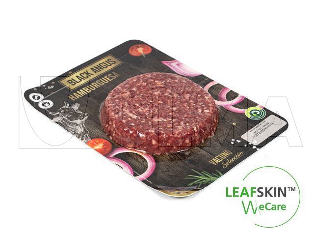 Hamburgueres embalados em termoselado em solução sustentável LeafSkin(TM)