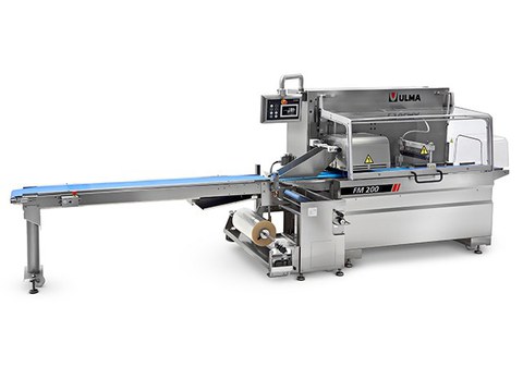 Sanduíche embalado com bandeja de cartão em flow pack (hffs) com atmosfera modificada (MAP) 1767_1.jpg FM 200 Máquina embaladora Flow Pack horizontal (HFFS) que realiza três soldas totalmente herméticas obtendo uma embalagem tipo almofada com atmosfera modificada (MAP) de alimentos frescos. Nível de produções médio alto.