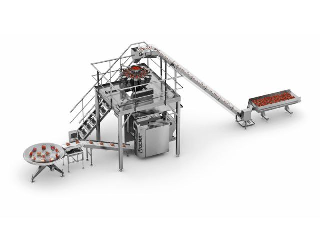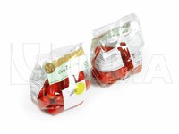 Tomate cherry embalado em máquina vertical com fundo estável e filme BOPP.