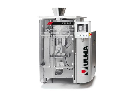 Mantecais embalados em formato fundo estável e clip. 1282_1.jpg VTI 500 Máquina embaladora vertical (VFFS) que realiza uma embalagem de três soldas. Máquina vertical intermitente de alta gama para aplicações de velocidades médias-altas.