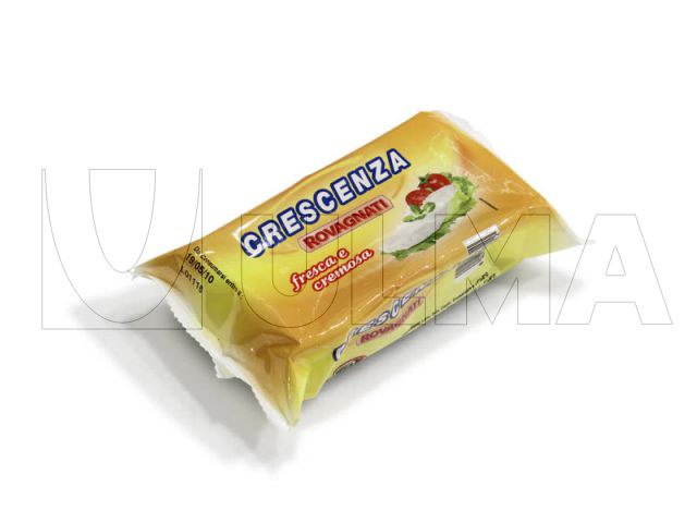 Queijo fresco embalado em flow pack (hffs) 1694_1.jpg FM 300 Máquina embaladora Flow Pack horizontal (HFFS) que realiza três soldas totalmente herméticas obtendo uma embalagem tipo almofada e com atmosfera modificada (MAP) de alimentos frescos. Nível de produção alto.