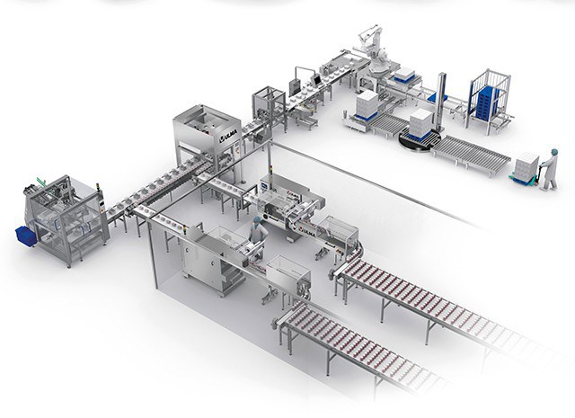 Solução completa para embalagem flow pack de agrupações de placas de Petri