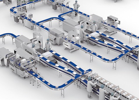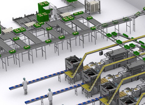 Soluções completas totalmente automatizadas para o setor avícola que contemplam desde a manipulação e carregamento do produto, até seu encaixotamento e paletização final.