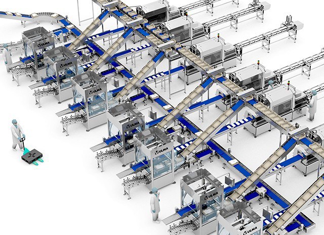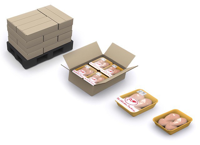 A solução completa de automação para a planta de embalagem inclui sete linhas de embalagem de cortes de frango.