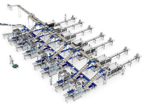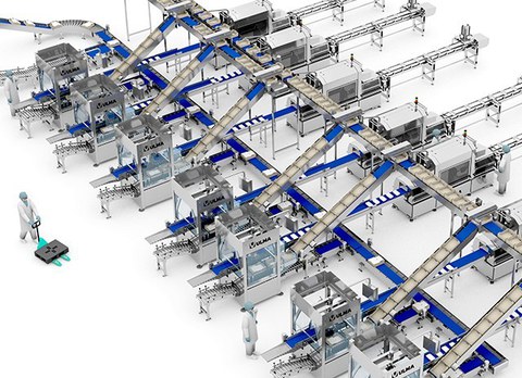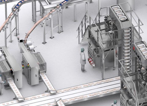 Soluções completas totalmente automatizadas para o setor cárneo que contemplam desde a manipulação e carregamento do produto, até seu encaixotamento e paletização final.