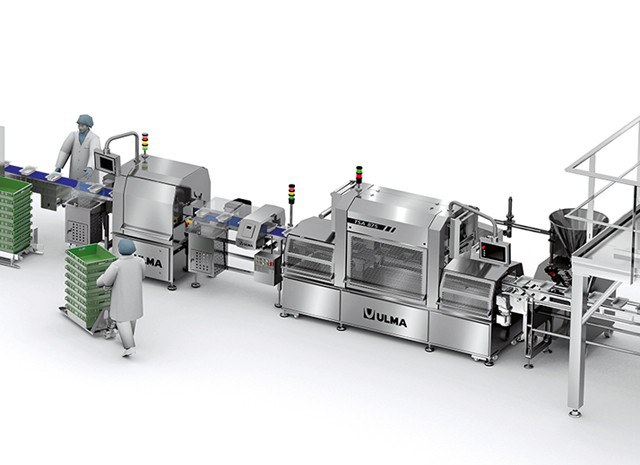 Linha completa para embalagem em bandejas termoseladas de pratos prontos.
