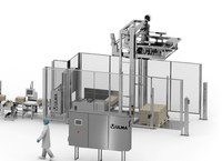 Finalmente, através de um sistema mecânico de paletização, são formados os paletes de caixas contendo as embalagens.