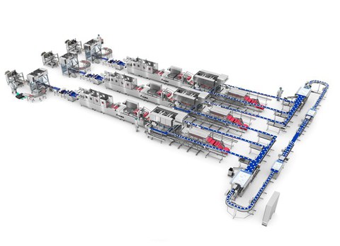 Soluções completas totalmente automatizadas para o setor lácteo que contemplam desde a manipulação do produto até seu encaixotamento e paletização final, passando pelo empacotamento.