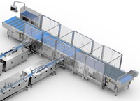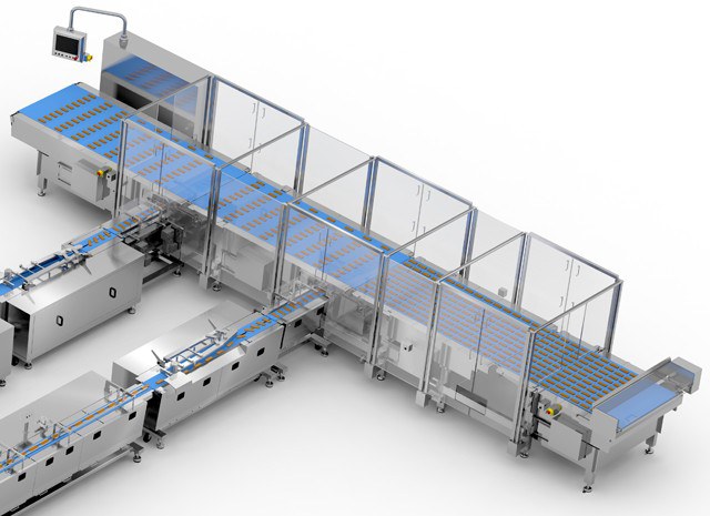 O sistema multicintas anterior à embalagem é responsável pelo alinhamento do produto e pela separação exata para maximizar o fluxo e a produção da embalagem.