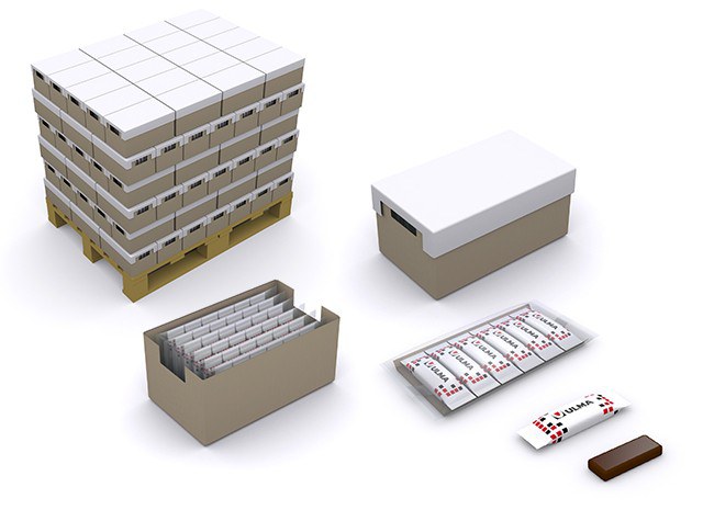 Solução completa para o empacotamento e encaixotamente de barrinhas de chocolate