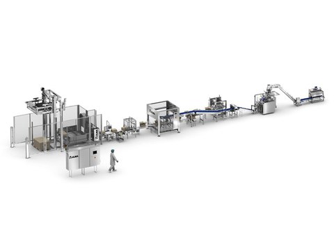 Soluções completas totalmente automatizadas para o setor de peixe e frutos do mar que contemplam desde o carregamento e dosagem do produto até seu encaixotamento e paletização final, passando pelo empacotamento e inspeção.